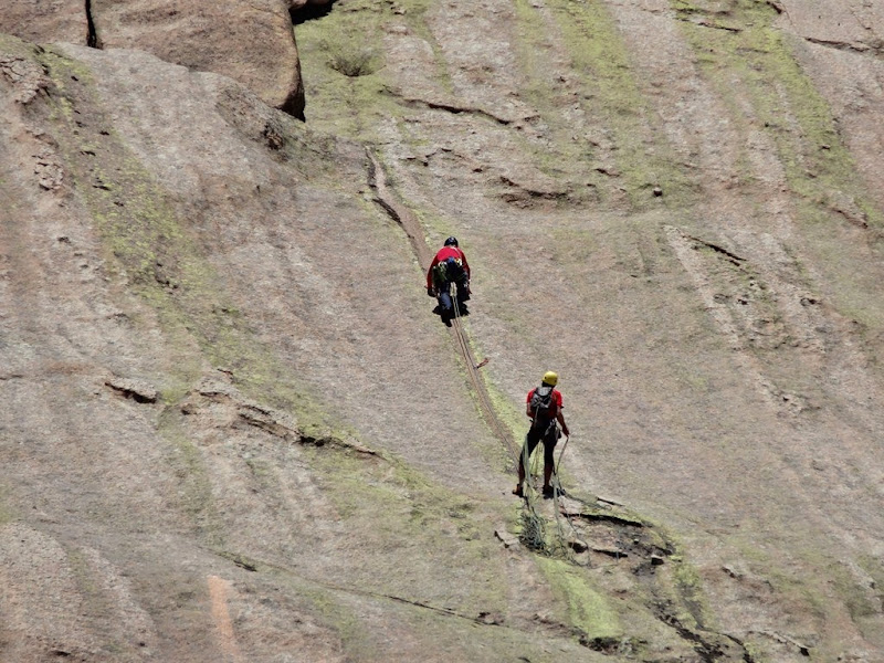 Aprovechamos este largo para adelantar a otra cordada que gentilmente nos deja paso...